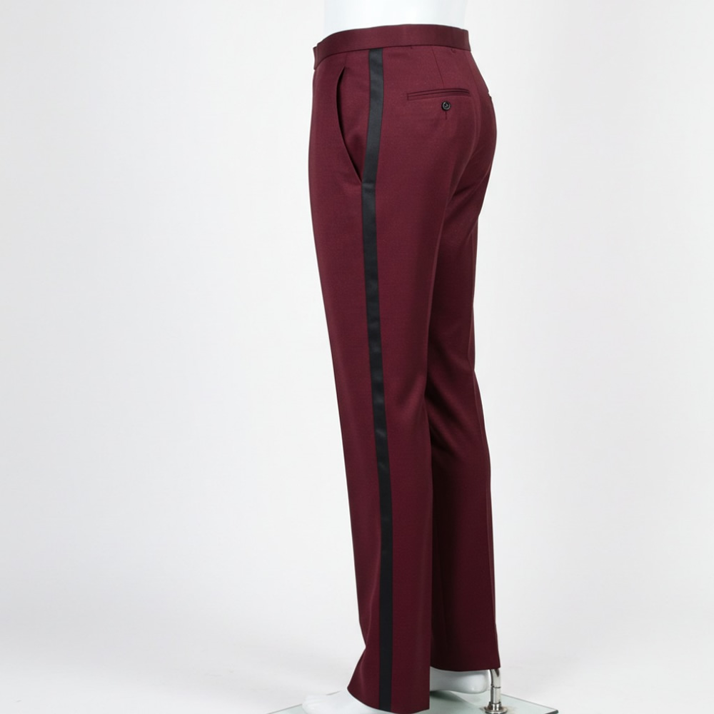 - Trouser: White Flat front, Black strip, Back pocket, Zip closure
