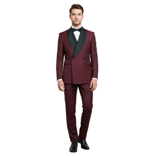 - Jacket: Black Shawl lapel, 2 Straight pockets, Double Breasted