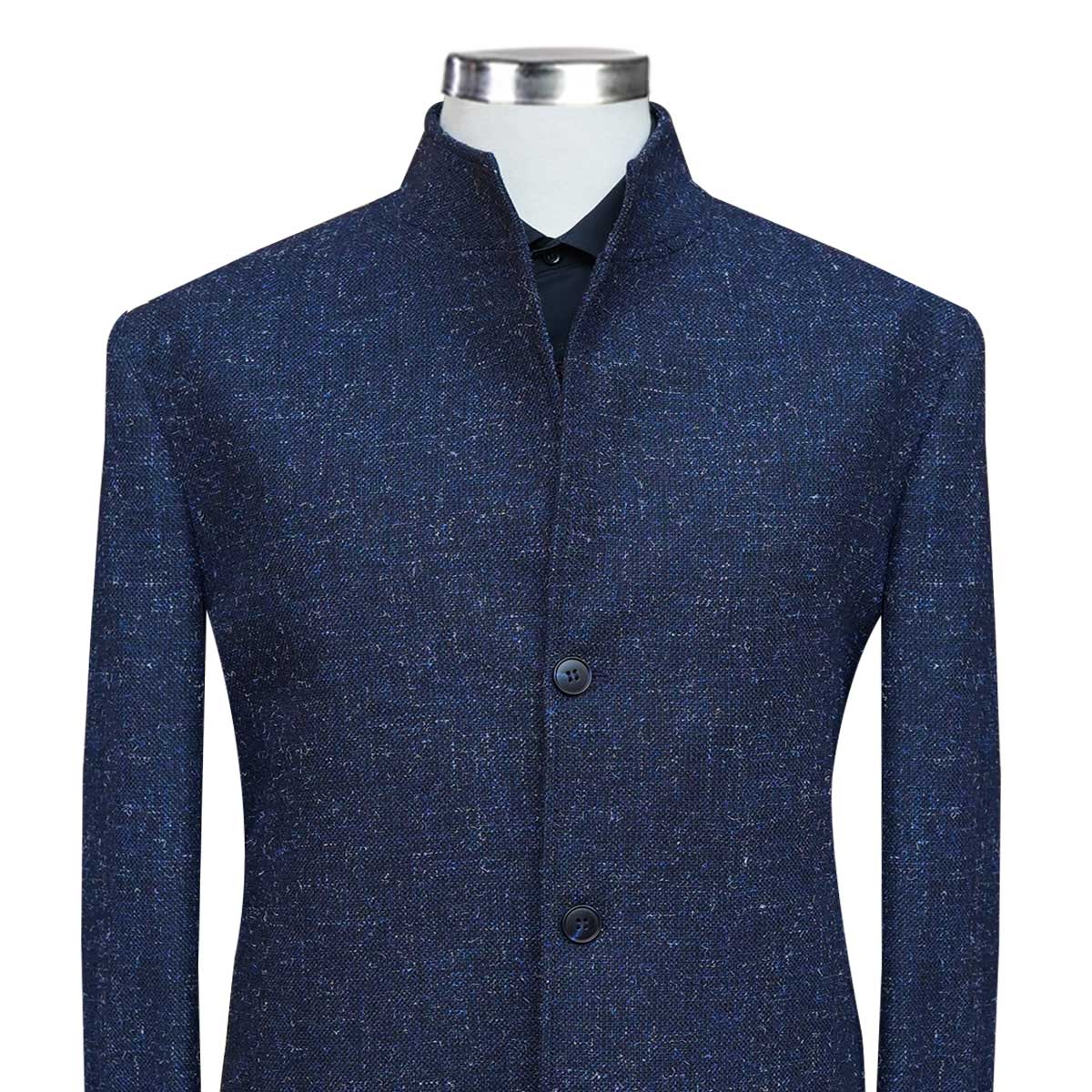 Coat: Single-breasted 3 buttons, Band Collar, Adjustable Cuff Straps